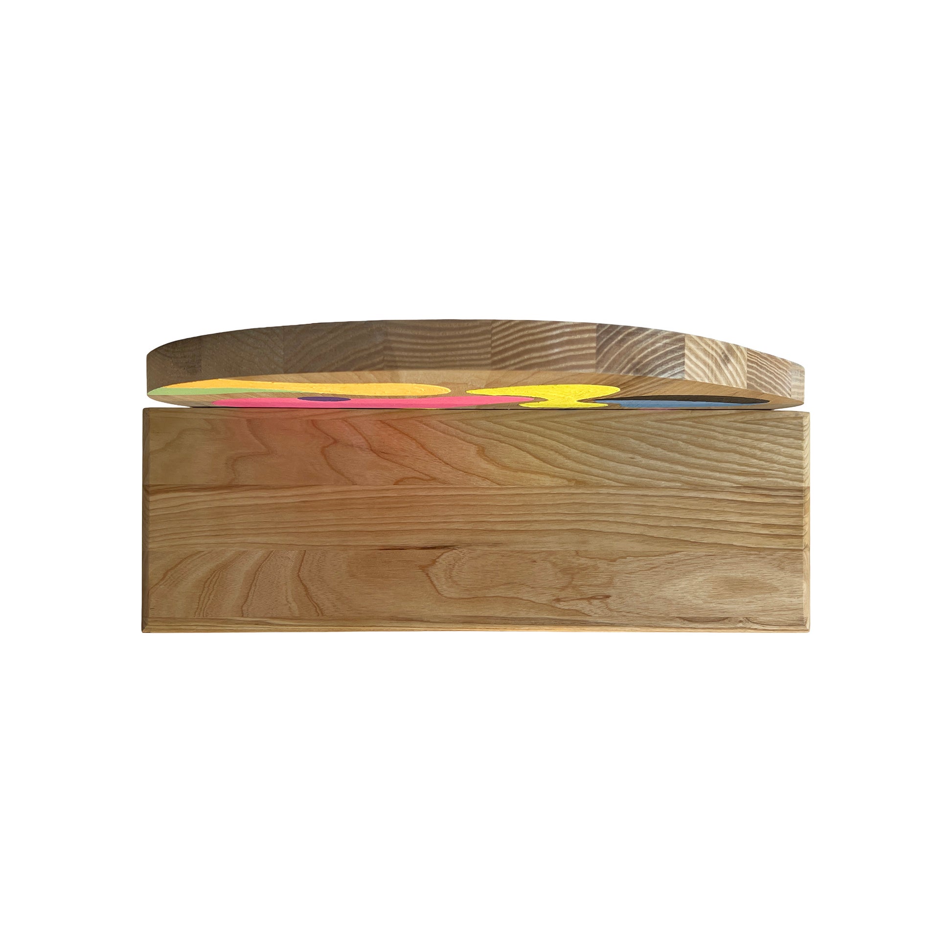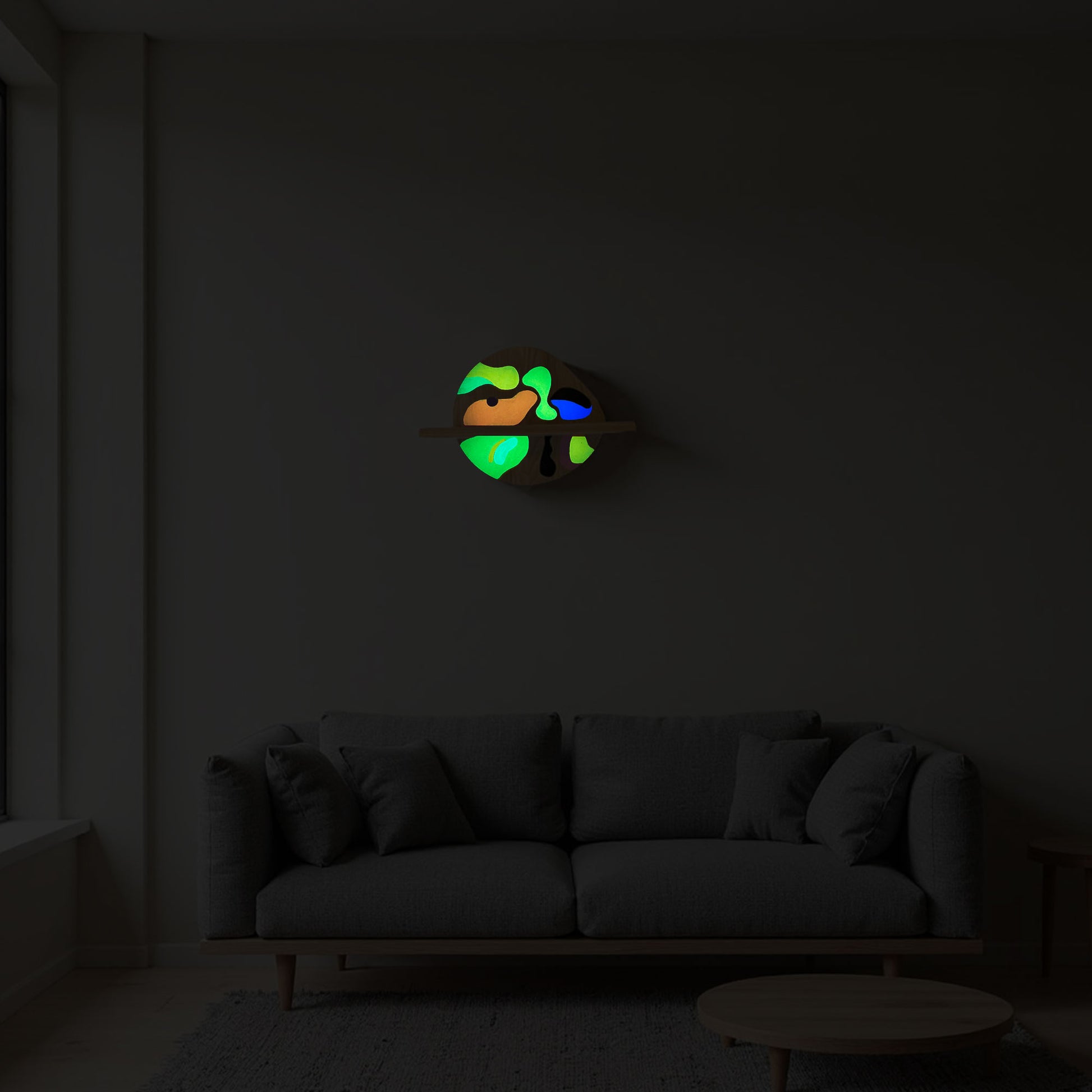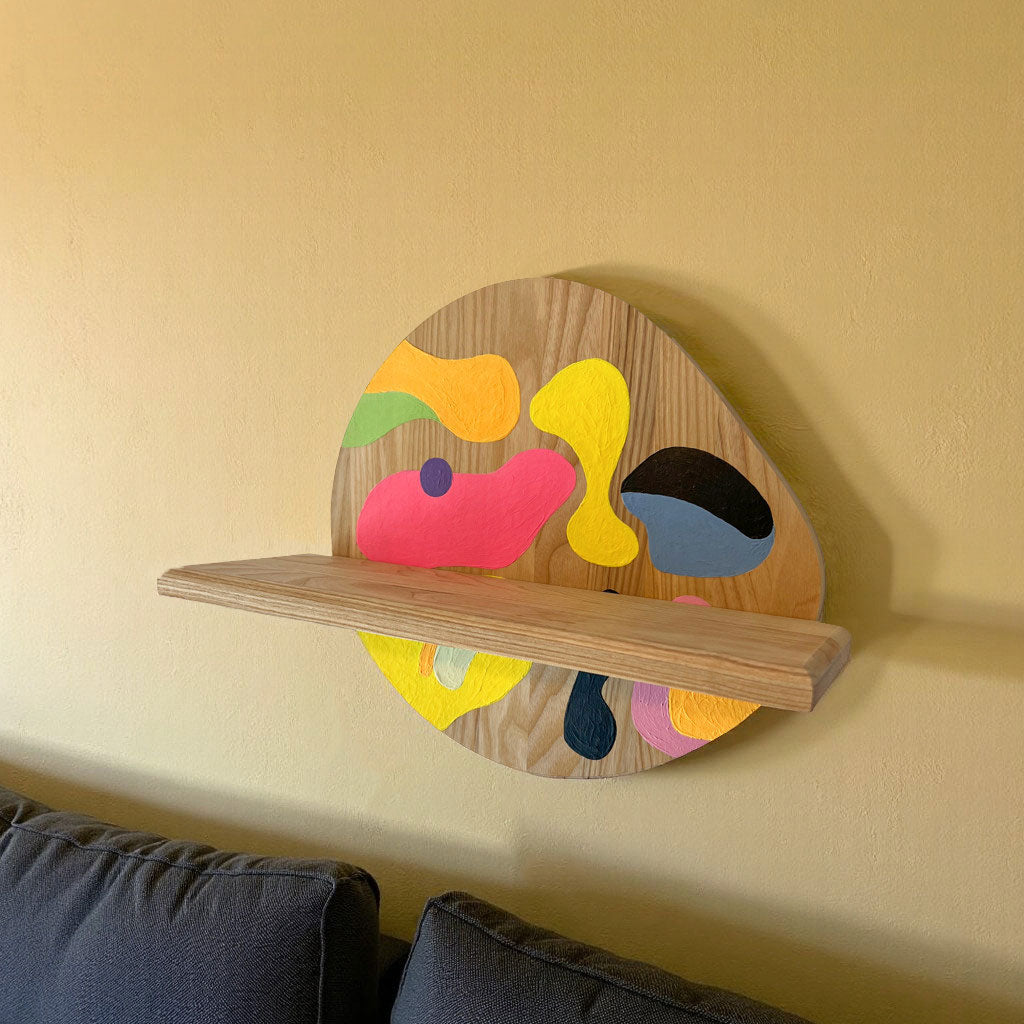 Tai daugiau nei lentyna - tai rankomis tapytas meno objektas, sukurtas ant natūralaus uosio pagrindo. Ryškios, organiškos spalvos įneša energijos, suteikdamas interjerui gyvybės.