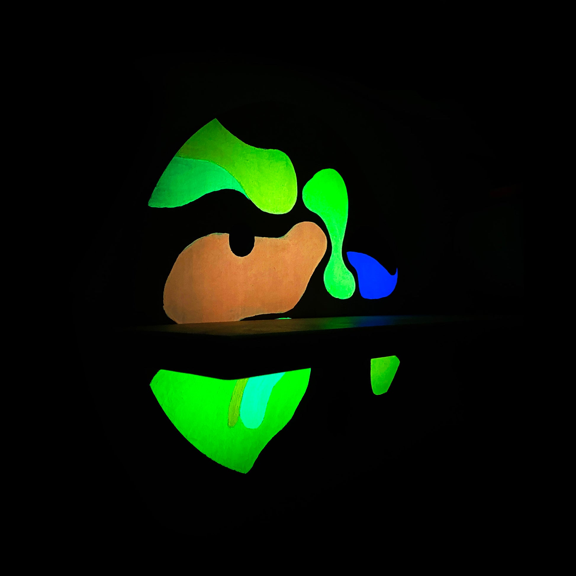 Originalus bei modernus rankų darbo meno kūrinys, tapytas akriliniais bei fosforiniais dažais, kurie tamsoje švelniai švyti. Šie dažai sugeria šviesos energiją ir vėliau ją išskiria - tai vadinama fotoliuminescencija, natūraliai pasireiškianti kai kuriuose gamtoje esančiuose mineraluose. Šviesą kaupianti technologija leidžia dažams pasikrauti nuo bet kokio šaltinio - saulės, LED, UV, o švytėjimas gali trukti iki 4-6 valandų.