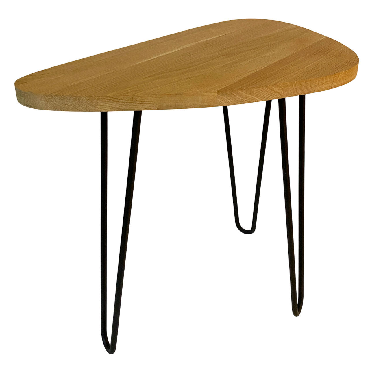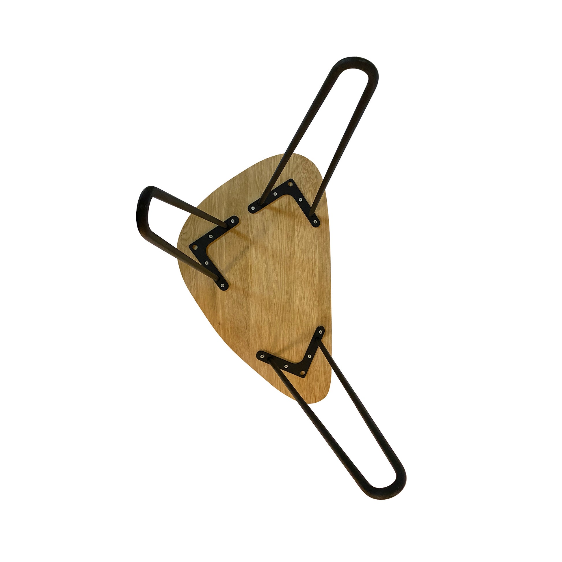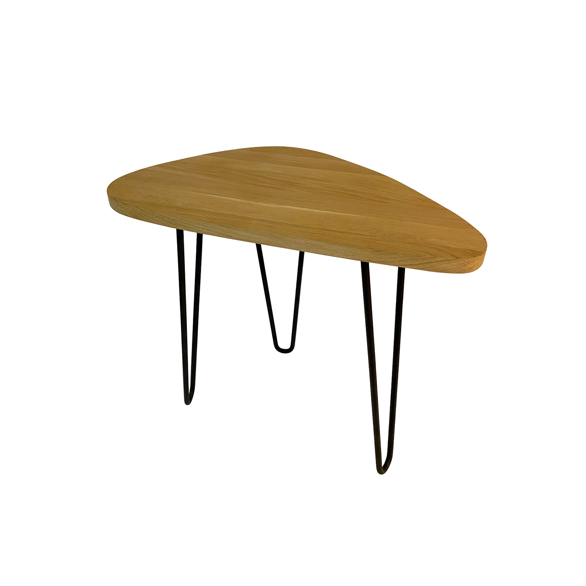 Asimetriška forma, primenanti akmenį, nugludintą gamtos. Ąžuolo paviršius ir plonos kojos sukuria lengvą, bet charakteringą interjero akcentą.