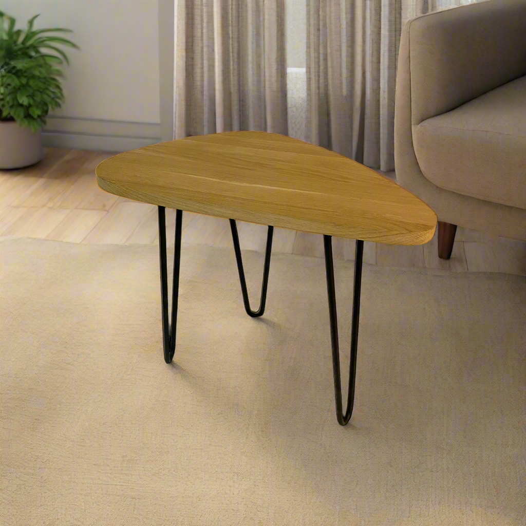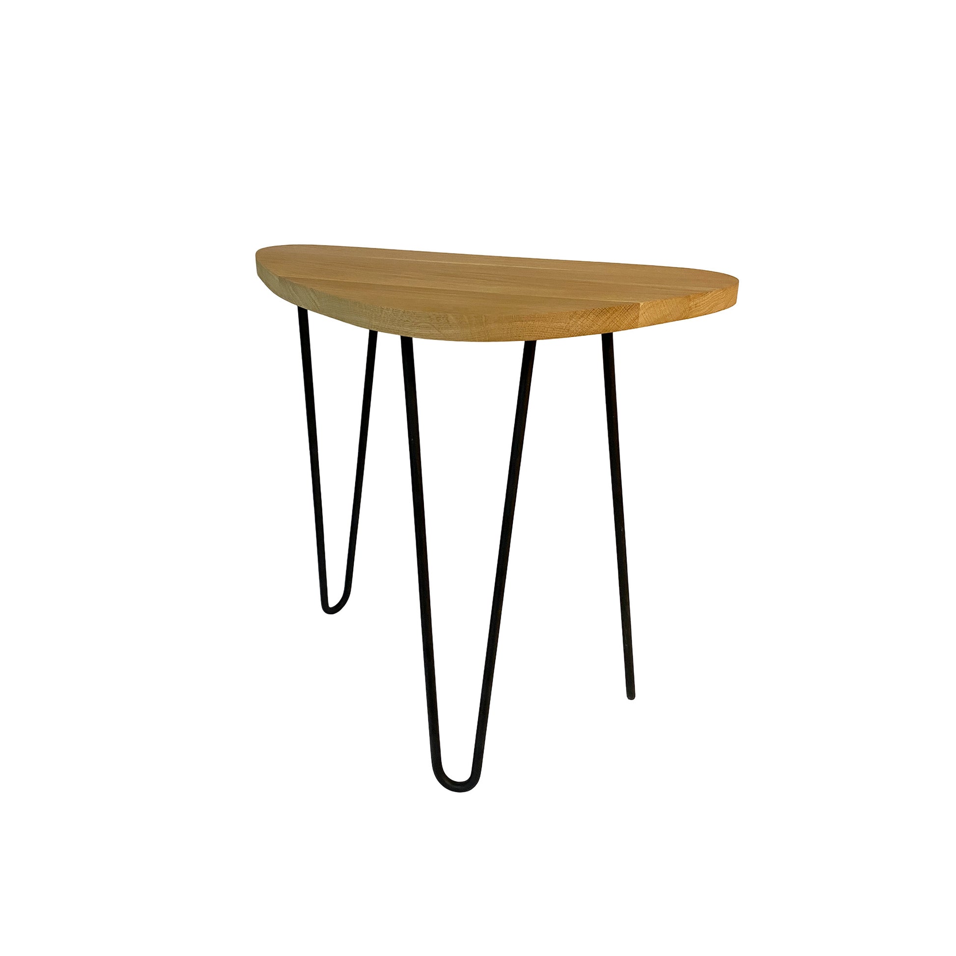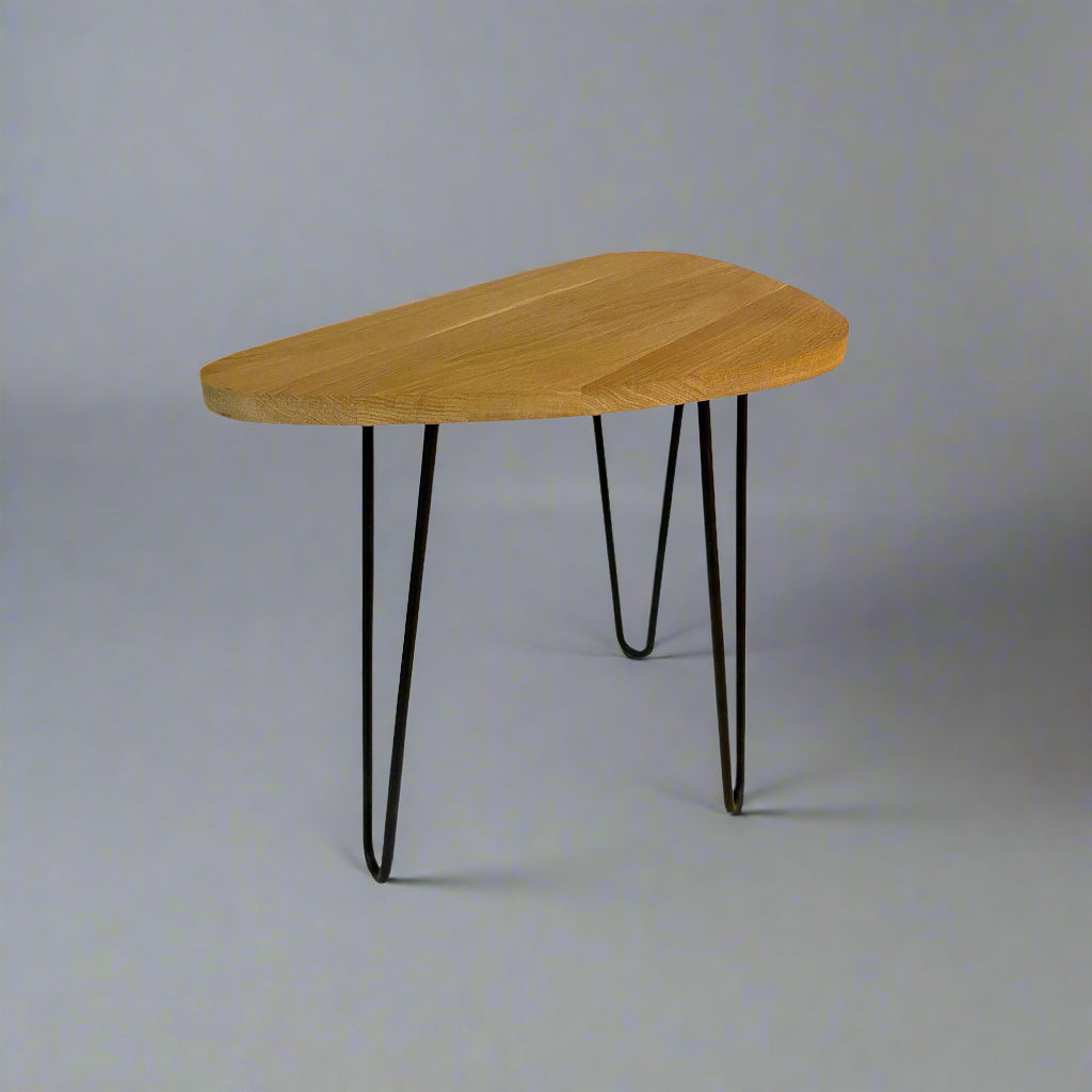 Asimetriška forma, primenanti akmenį, nugludintą gamtos. Ąžuolo paviršius ir plonos kojos sukuria lengvą, bet charakteringą interjero akcentą.