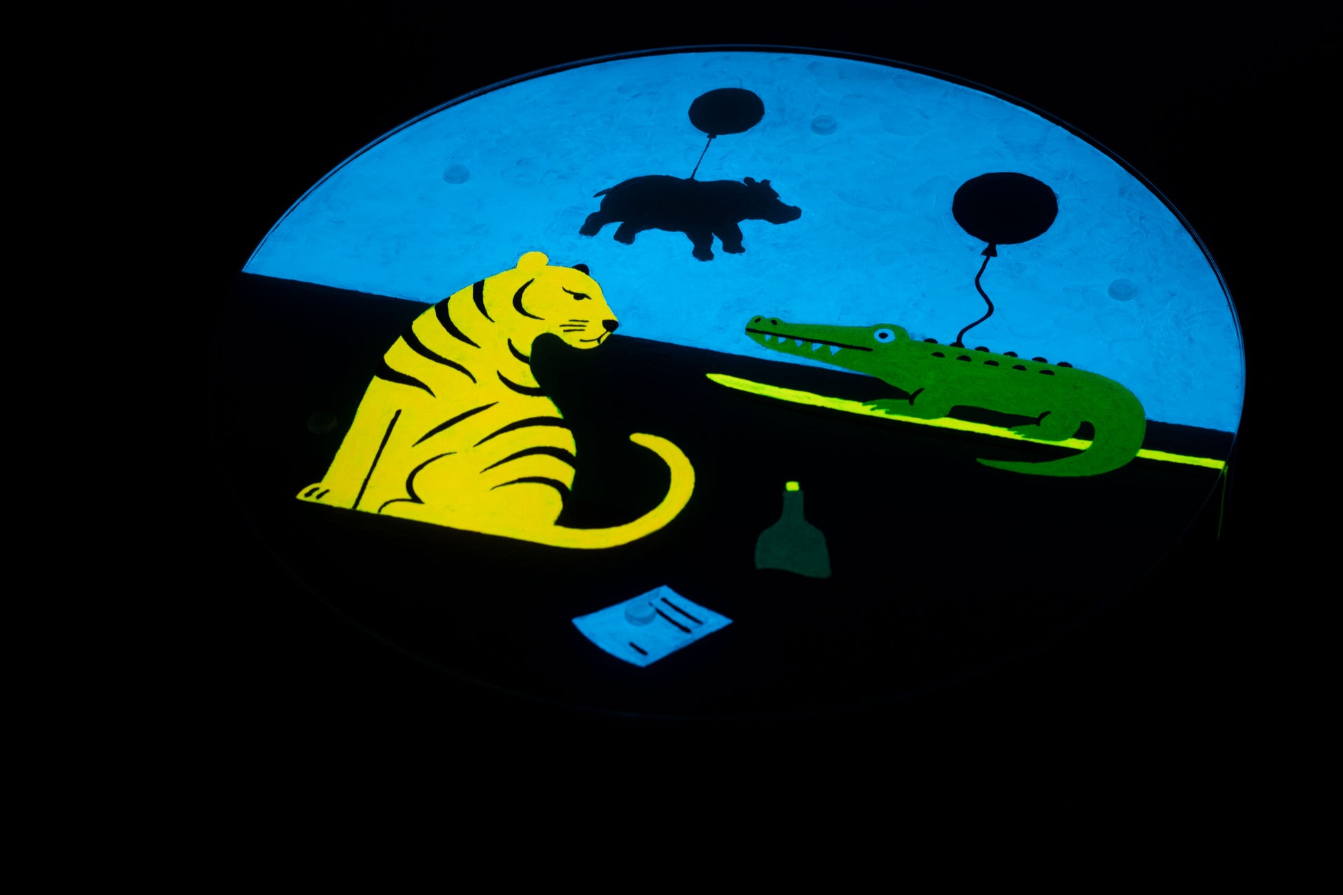 Originalus bei modernus rankų darbo meno kūrinys, tapytas akriliniais bei fosforiniais dažais, kurie tamsoje švelniai švyti. Šie dažai sugeria šviesos energiją ir vėliau ją išskiria - tai vadinama fotoliuminescencija, natūraliai pasireiškianti kai kuriuose gamtoje esančiuose mineraluose. Šviesą kaupianti technologija leidžia dažams pasikrauti nuo bet kokio šaltinio - saulės, LED, UV, o švytėjimas gali trukti iki 4-6 valandų.