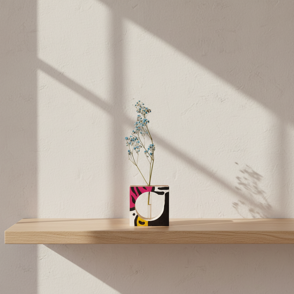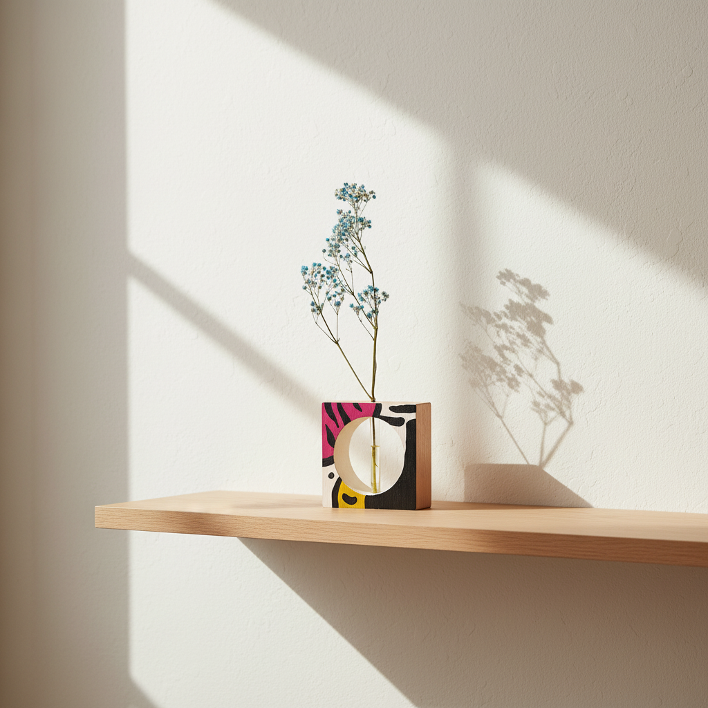 Funkcionalus menas, kuriam nereikia daug vietos, kad būtų pastebėtas. Tvirtas ąžuolas ir autorinė tapyba susijungia į objektus, kurie byloja apie vidinę ramybę ir aiškų tikslą. Gaminiai neužima daug vietos, bet užpildo erdvę savo buvimu.