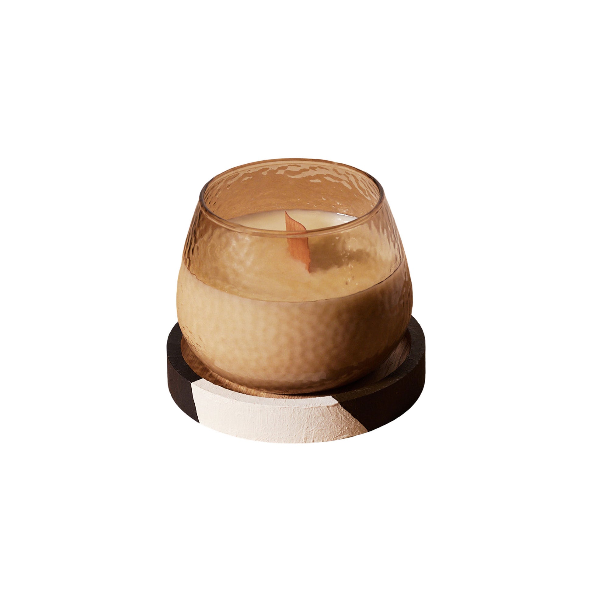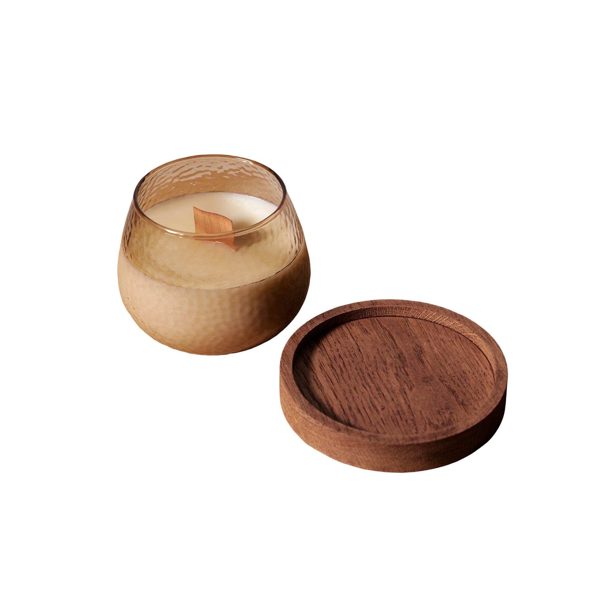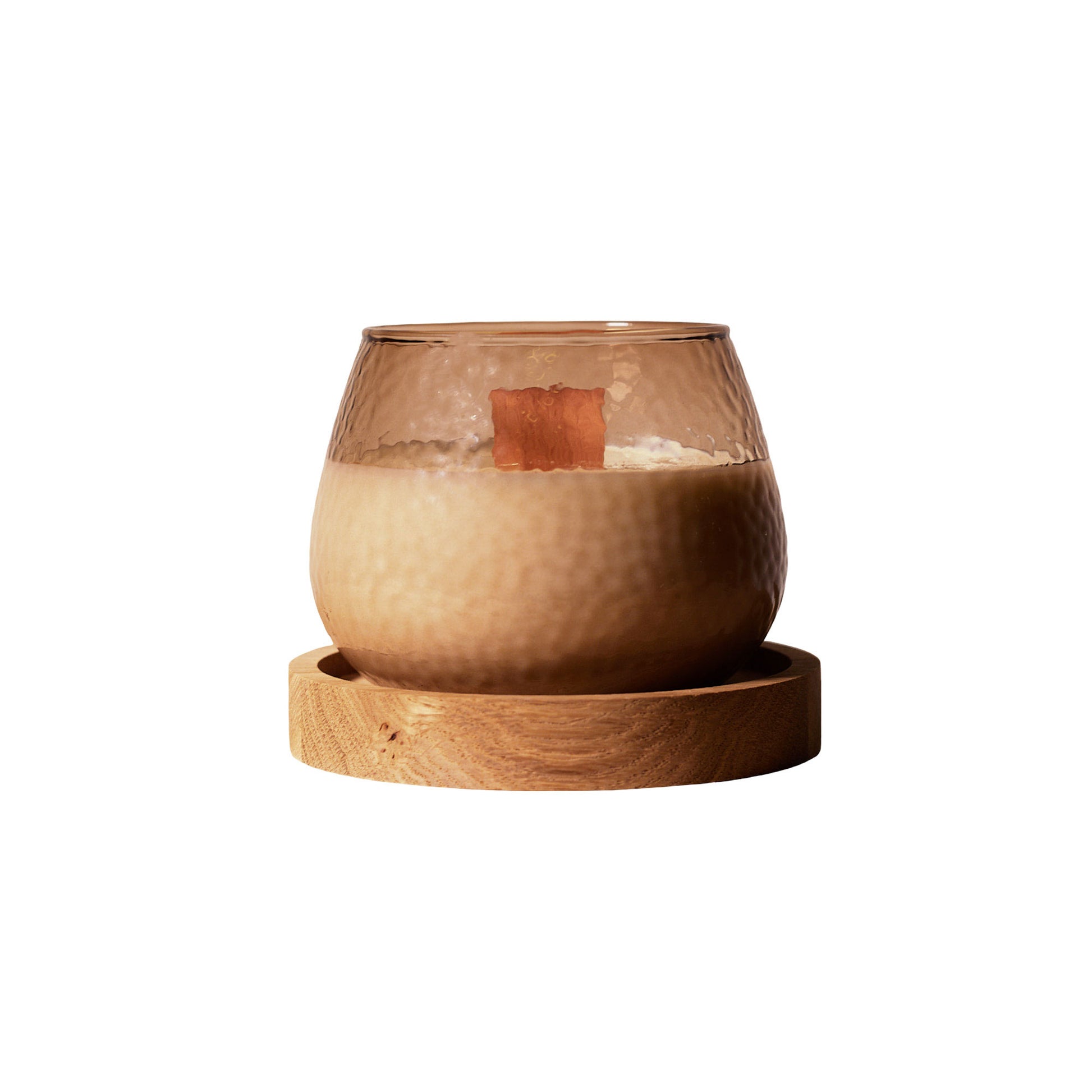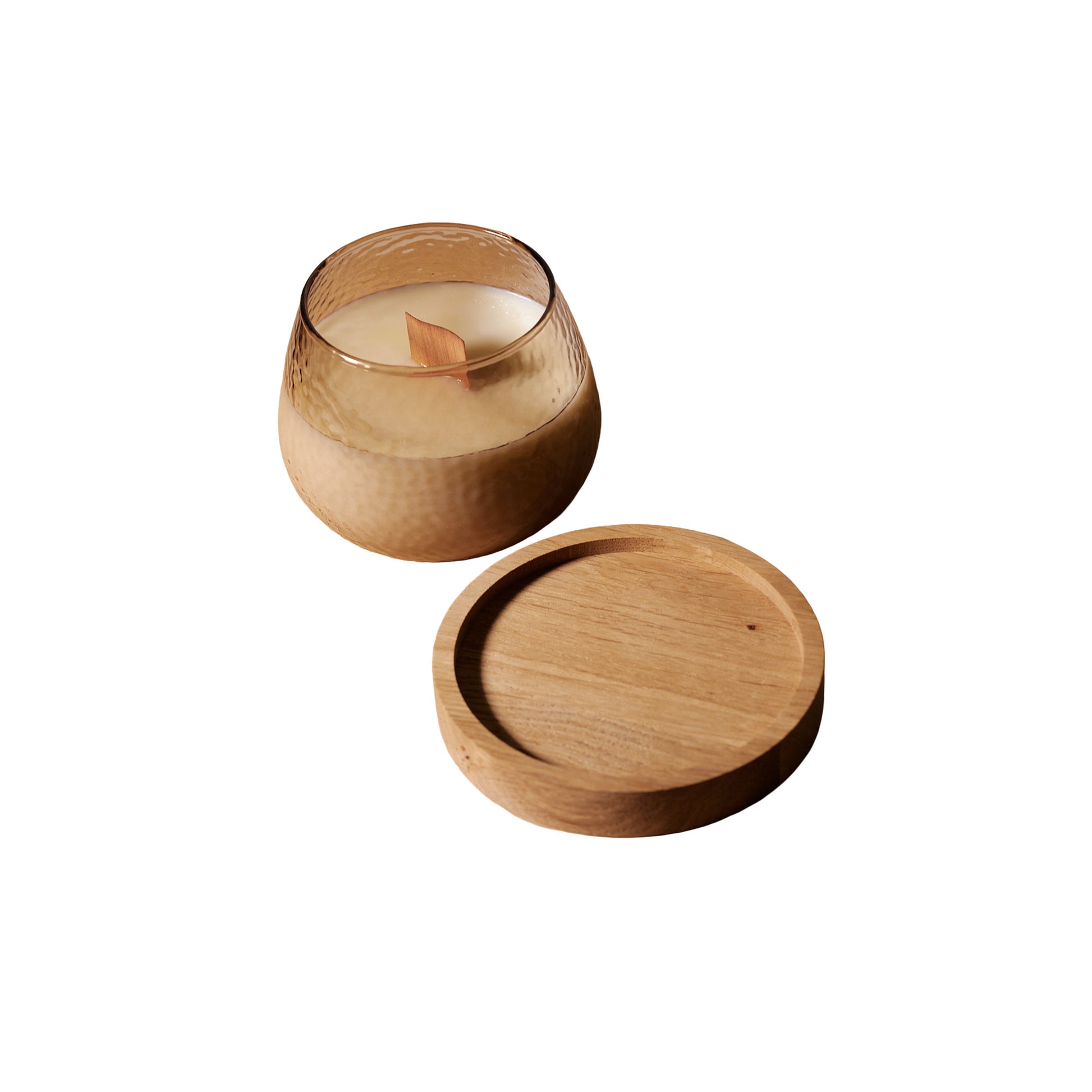 Pasirinkite tik ažuolinę žvakidę arba rinkinį su 280 ml rankų darbo sojų vaško žvake. Pagaminta iš 100% natūralaus sojų vaško, ši žvakė dega lėtai ir tolygiai, ilgai skleisdama šiltą ambros aromatą, kuris suteikia jaukų, šiltą ir raminantį pojūtį. Puikus būdas papildyti namus tiek šviesa, tiek kvapu.