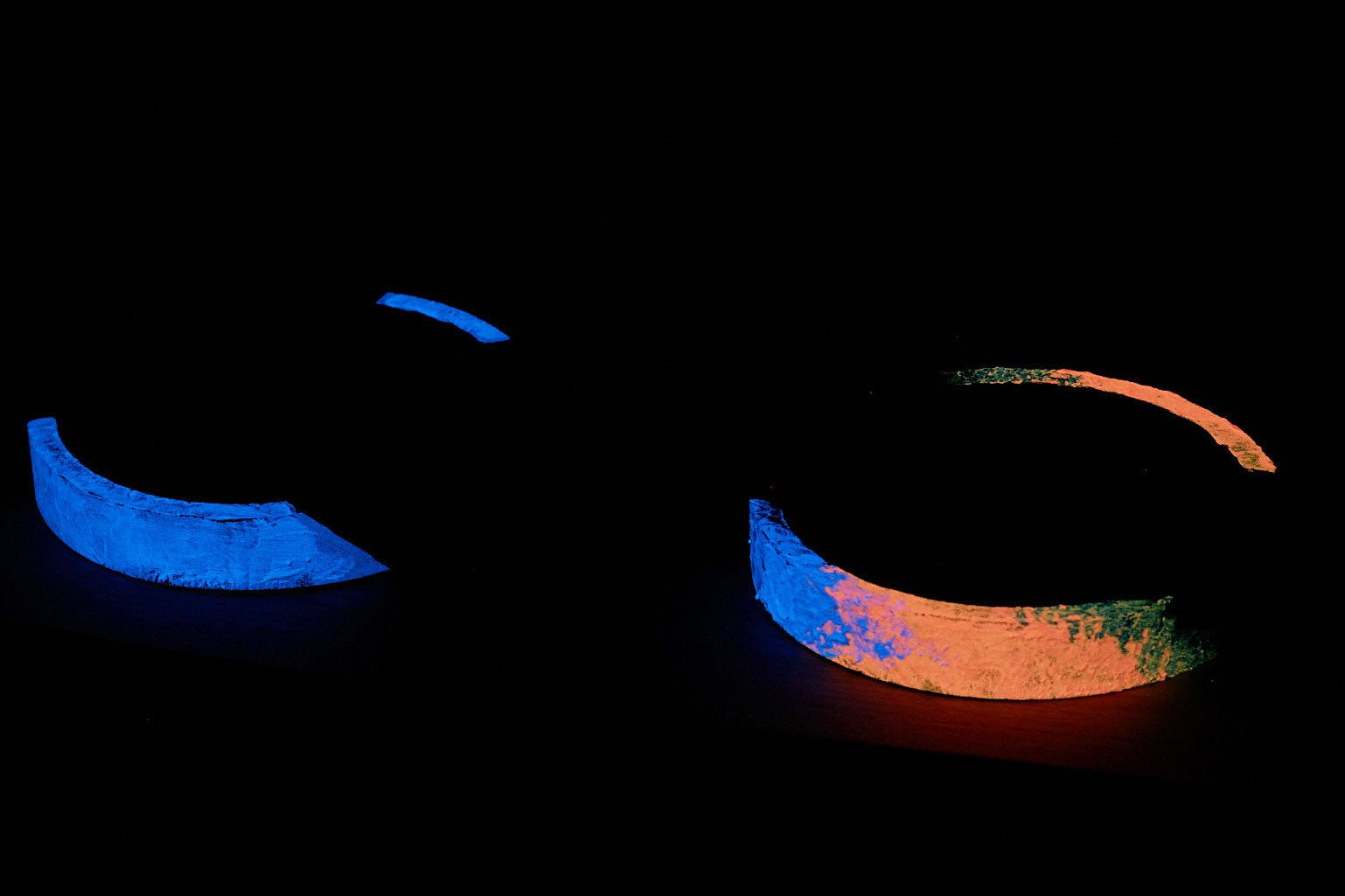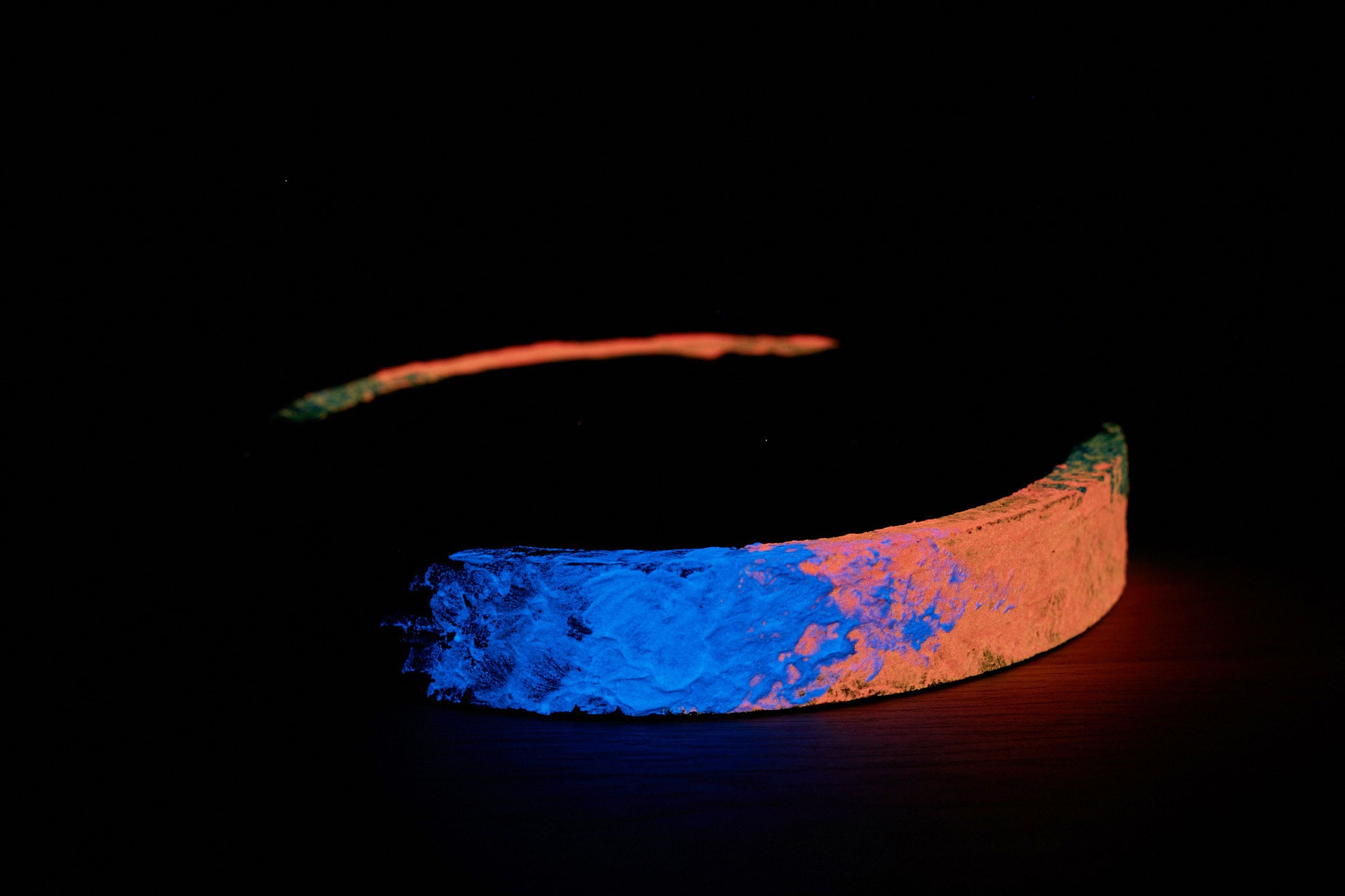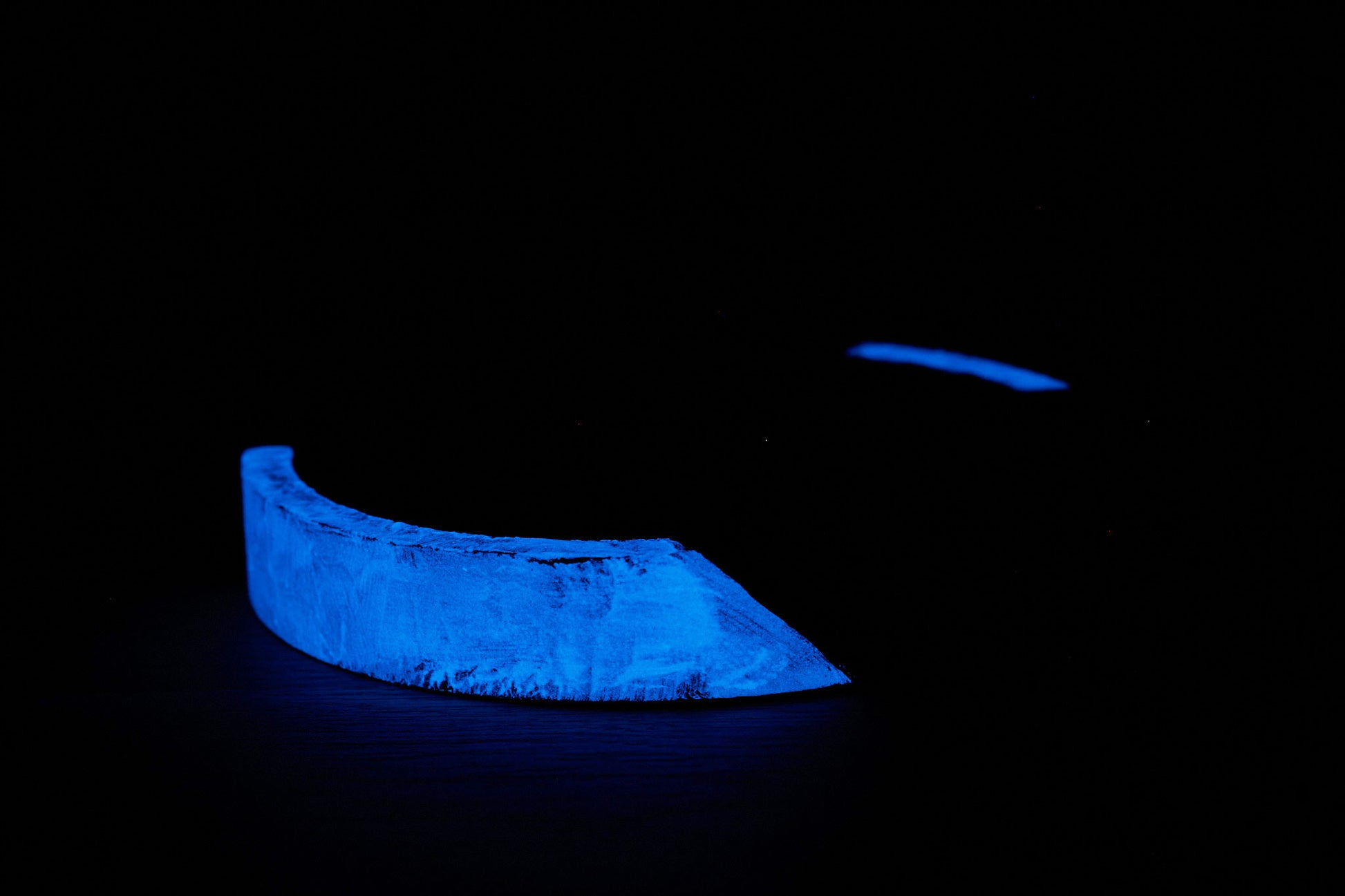 Originalus bei modernus rankų darbo meno kūrinys, tapytas akriliniais bei fosforiniais dažais, kurie tamsoje švelniai švyti. Šie dažai sugeria šviesos energiją ir vėliau ją išskiria - tai vadinama fotoliuminescencija, natūraliai pasireiškianti kai kuriuose gamtoje esančiuose mineraluose. Šviesą kaupianti technologija leidžia dažams pasikrauti nuo bet kokio šaltinio - saulės, LED, UV, o švytėjimas gali trukti iki 4-6 valandų.