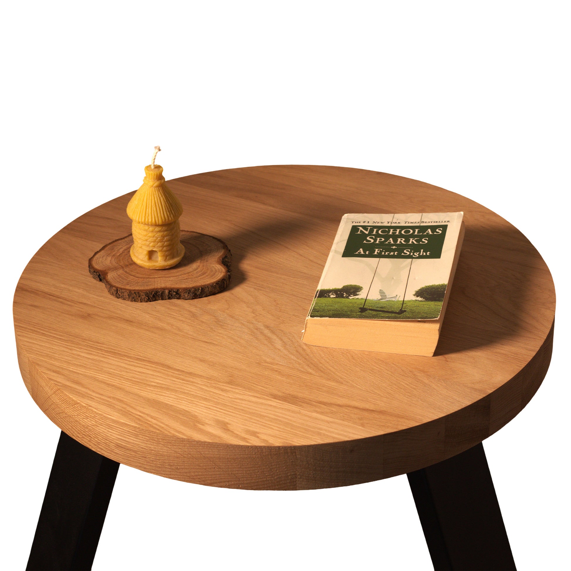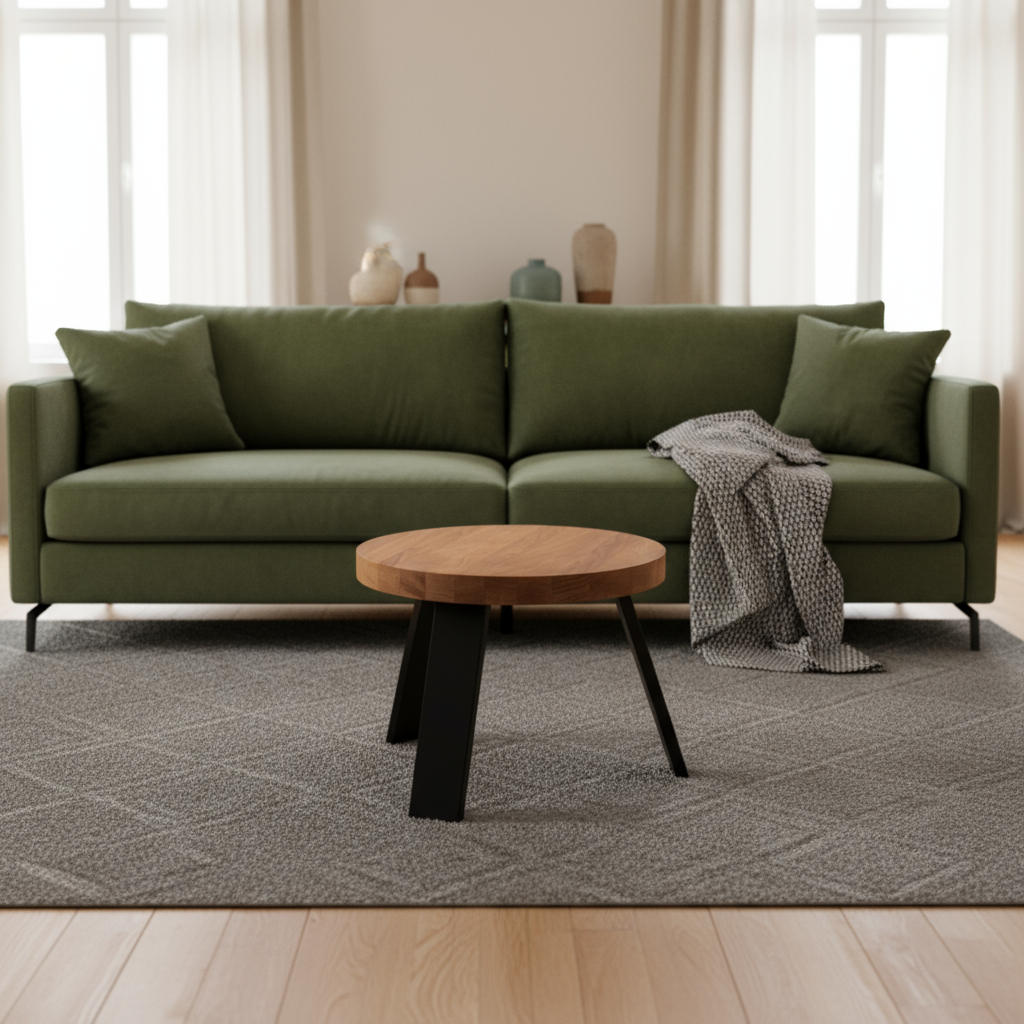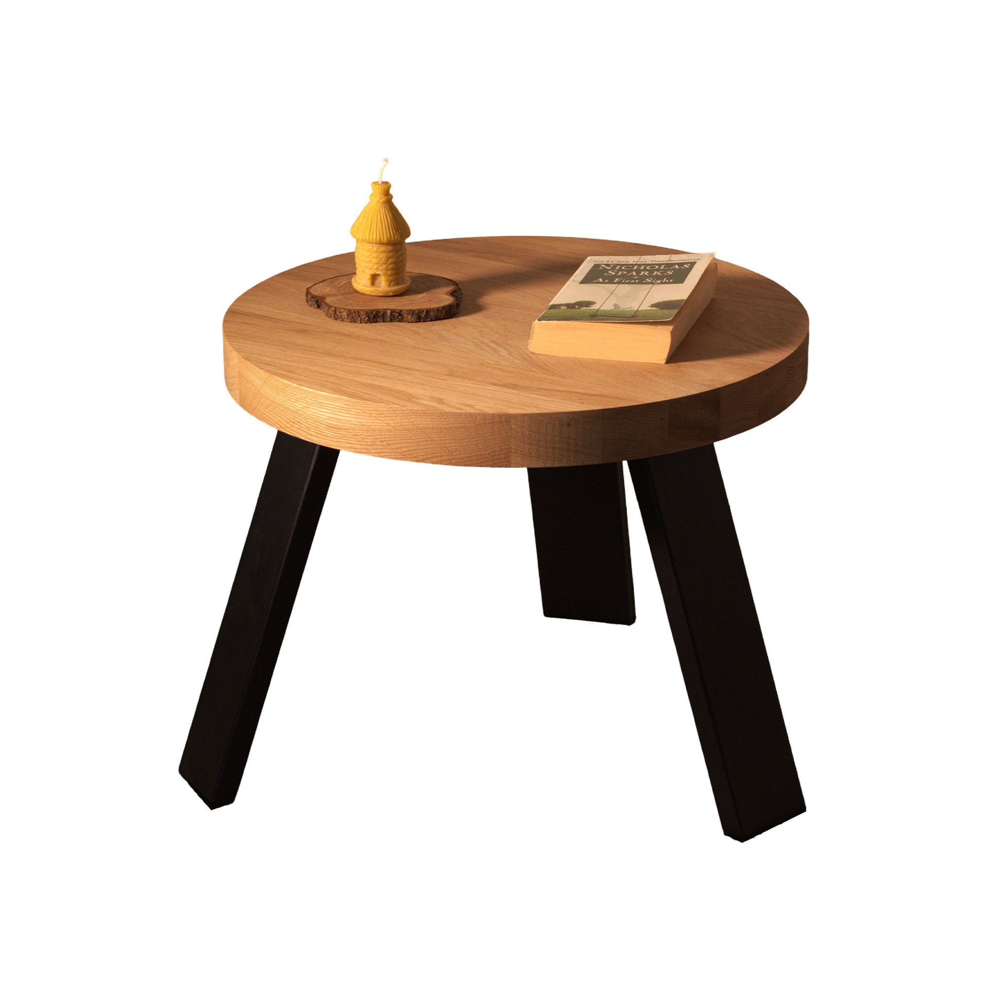 Natūralus medžio raštas ir kontrastingos metalinės kojos. Šis staliukas įkūnija paprastumą, kuris niekada neišeina iš mados.