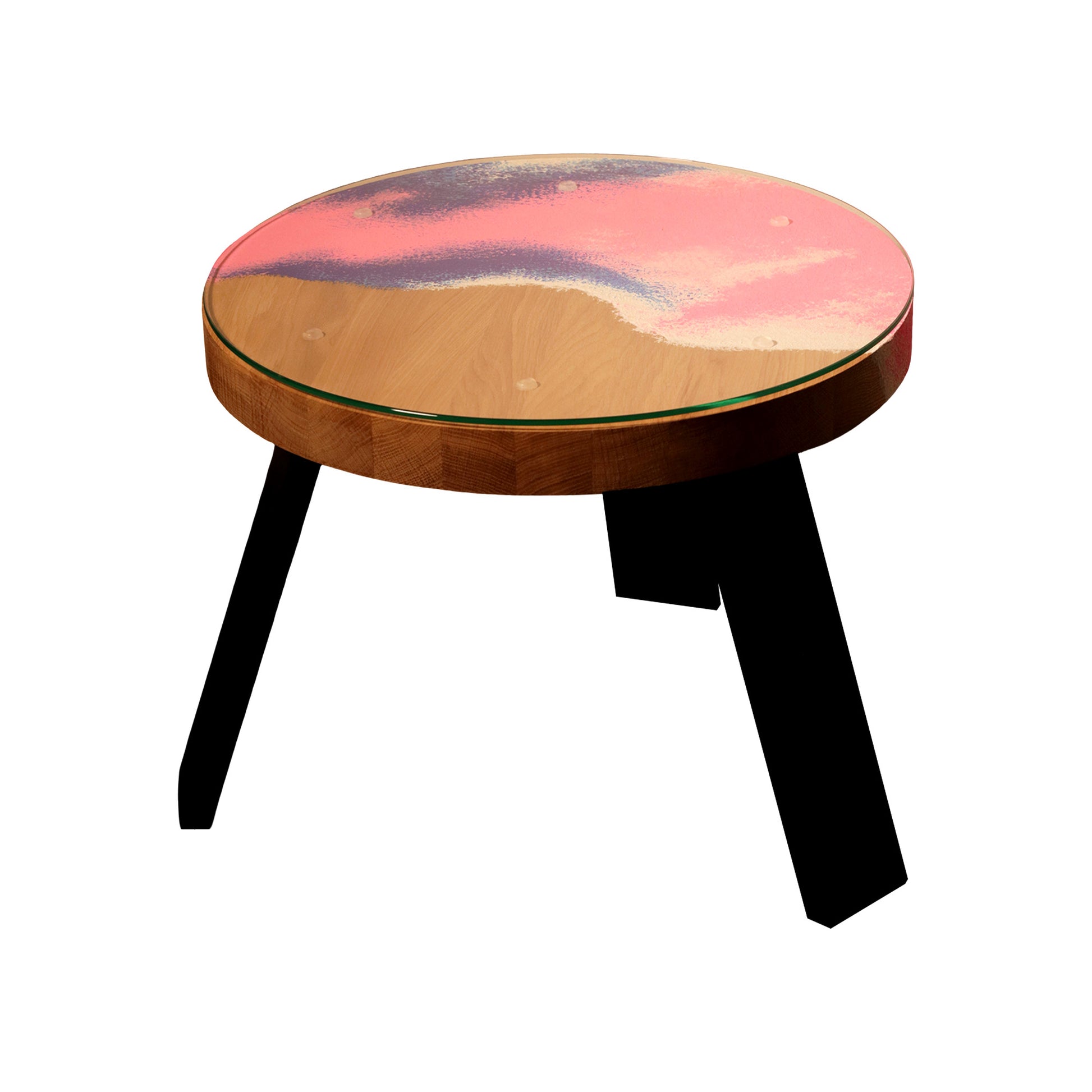 Vienetinis kūrinys, kuriame natūralus ąžuolas susitinka su subtilia menininko interpretacija. Metalinės kojos suteikia jam architektūrinio lengvumo ir formuoja išgrynintos, modernios prabangos įspūdį.