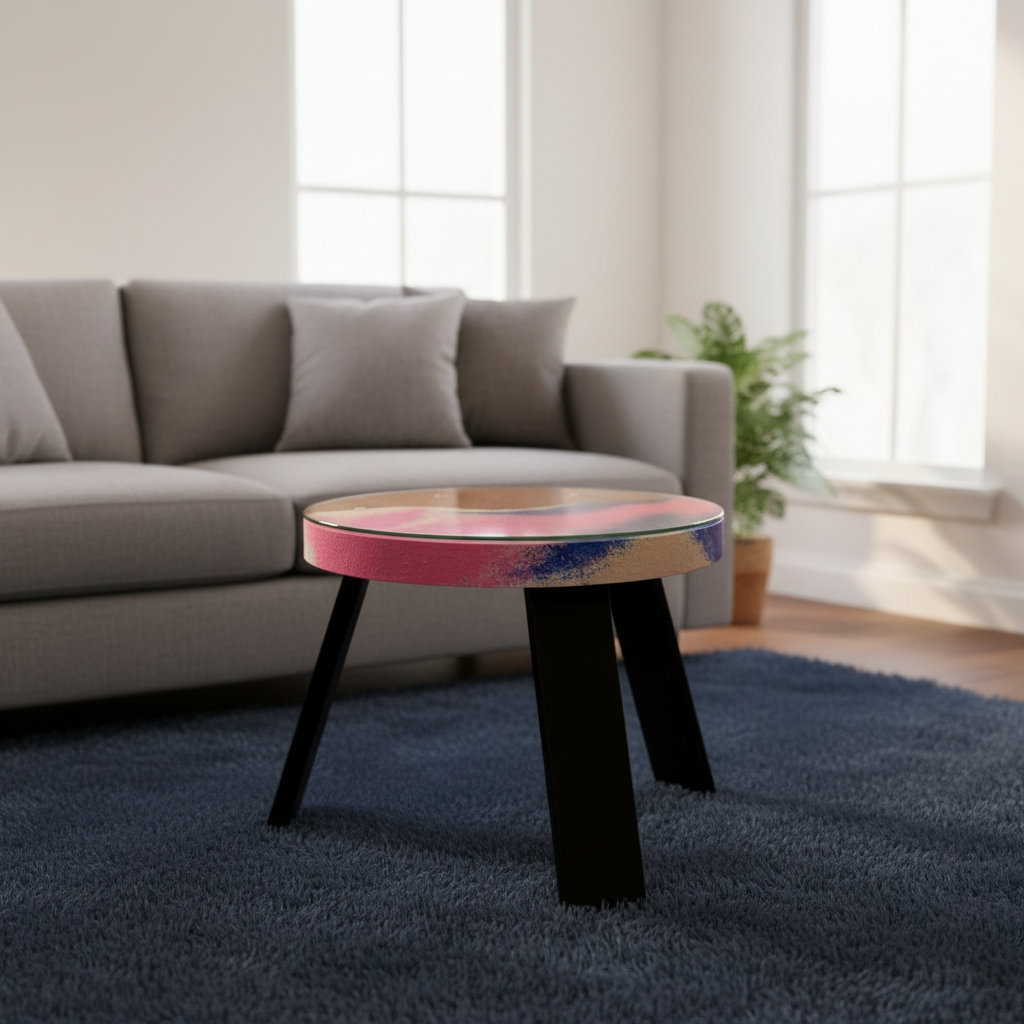 Dizainas gimė iš kruopščiai atrinktų, aukščiausios kokybės medžiagų. Naudojamas ąžuolo masyvas su 8 % drėgme užtikrina ilgaamžį stabilumą, o grūdintas stiklas saugo meninį paviršių nuo pažeidimų. Tvirta metalinė kojų bazė suteikia modernumo bei lengvumo.