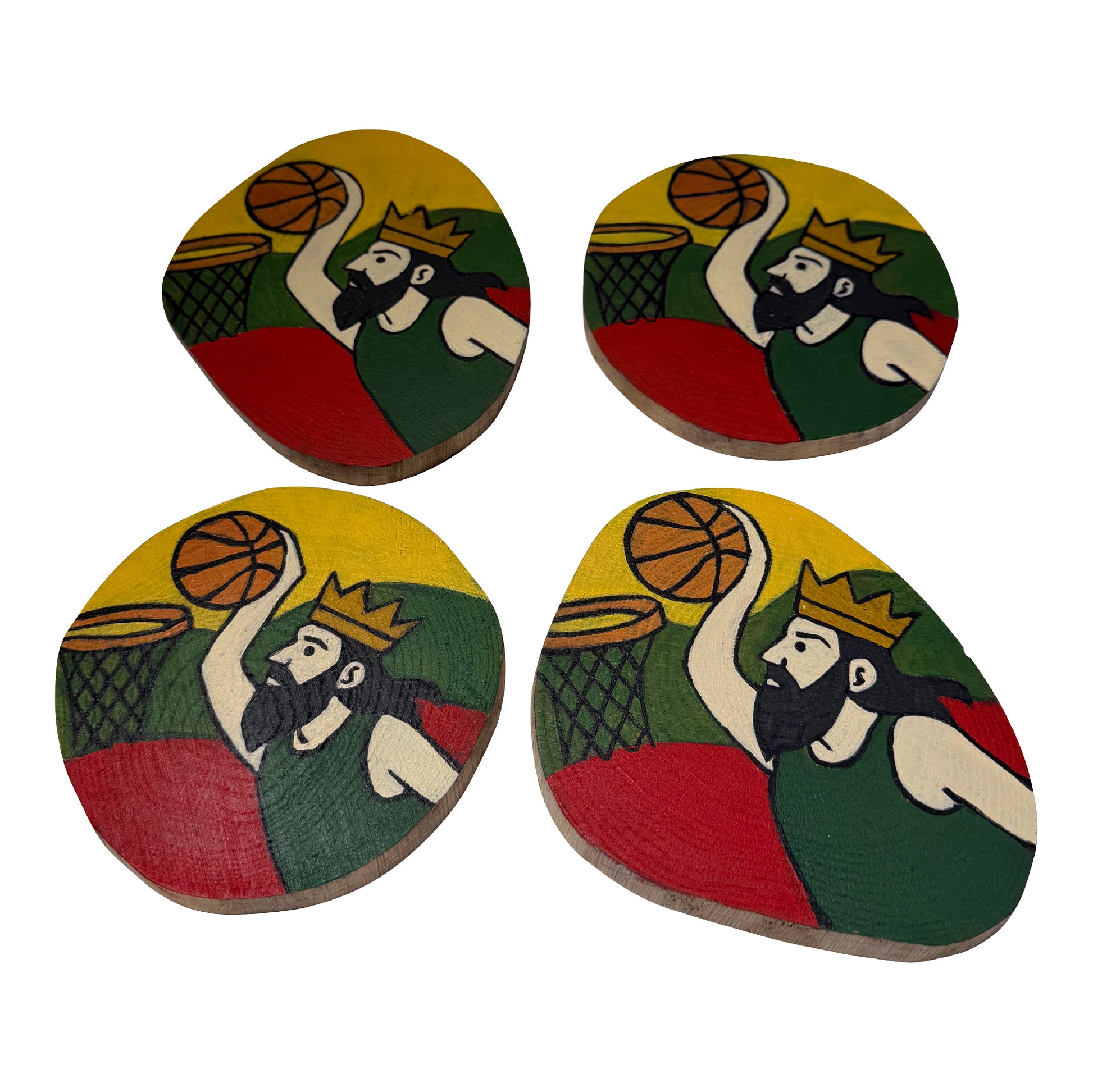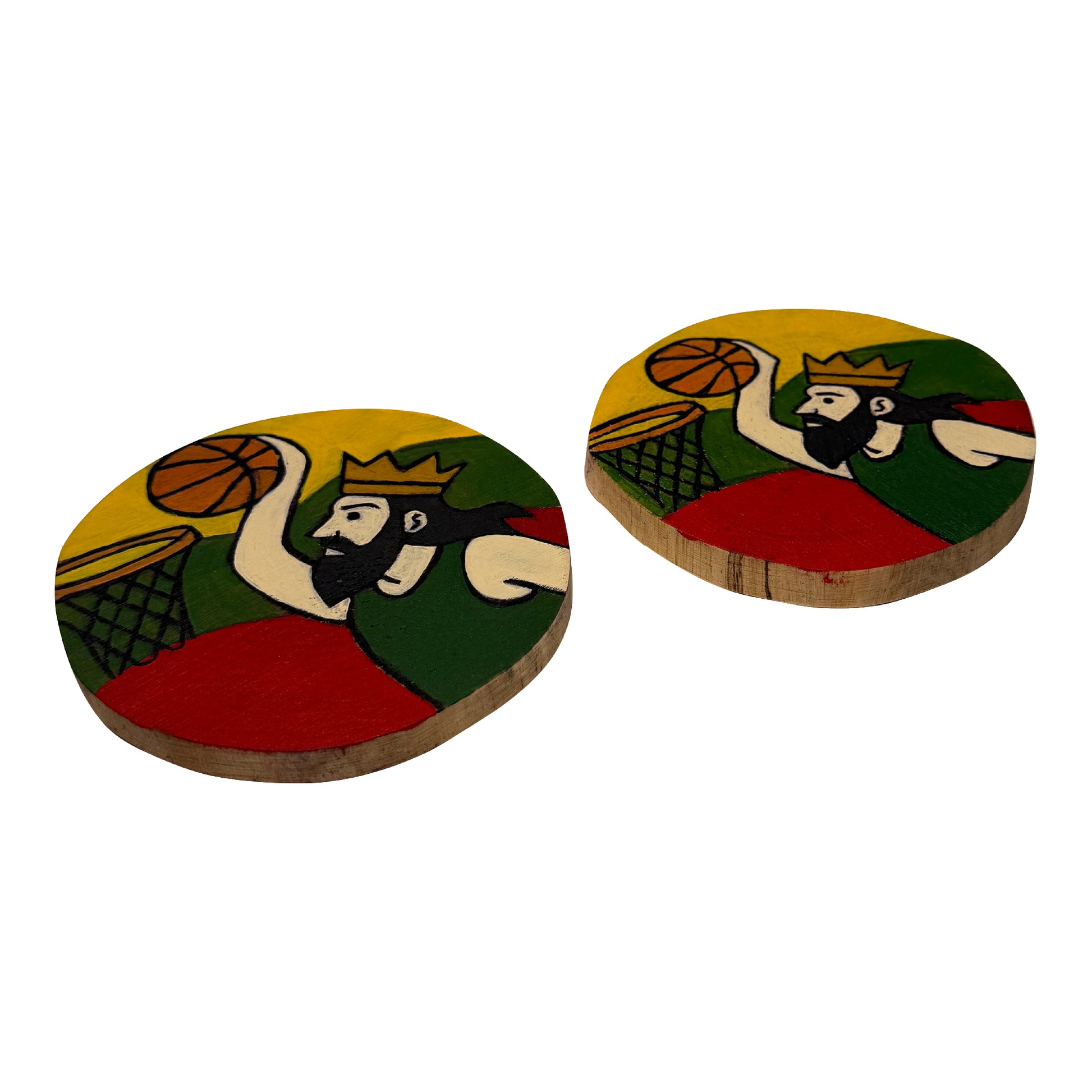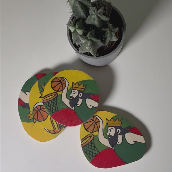 Riboto leidimo krepšinio ąžuoliniai padėkliukai. Rankomis tapyti, kiekvienas iš jų yra unikalus ir skirtas tiems, kuriems krepšinis yra daugiau nei žaidimas.